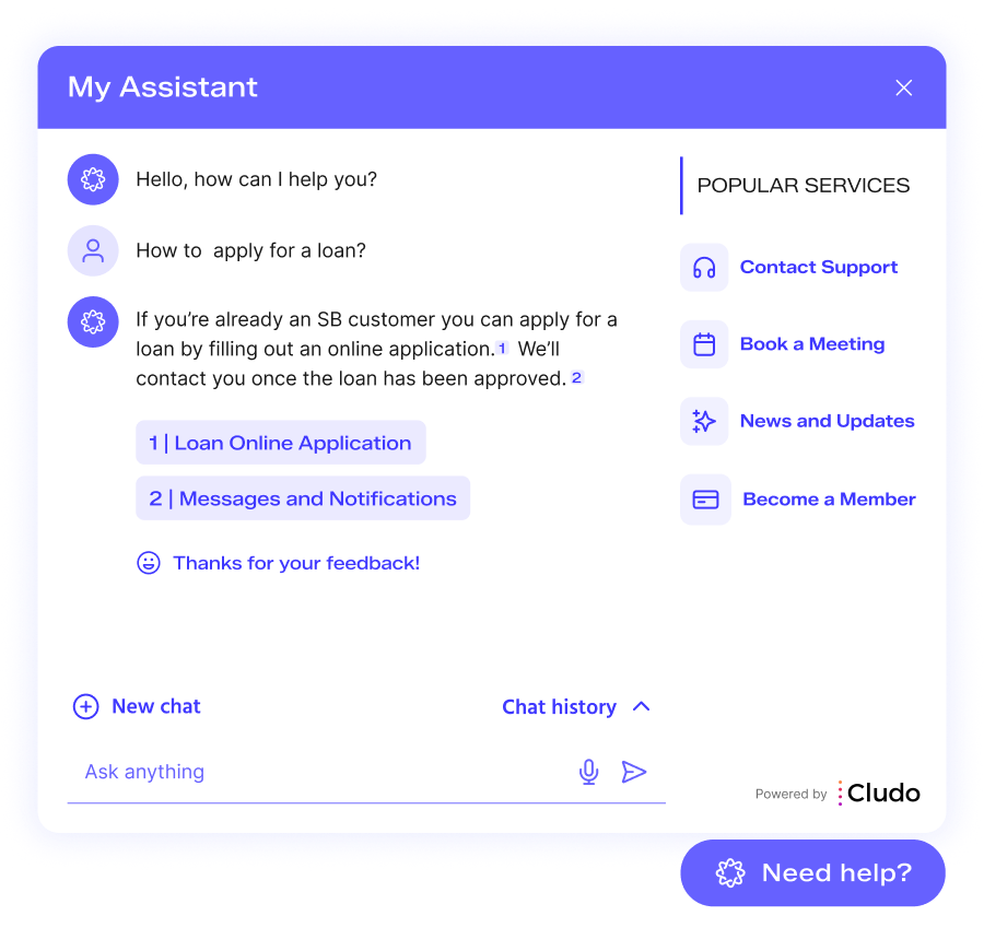 AI Chat crawls and understands your website content to deliver clear, source-based answers in a conversational experience – helping users move forward instantly