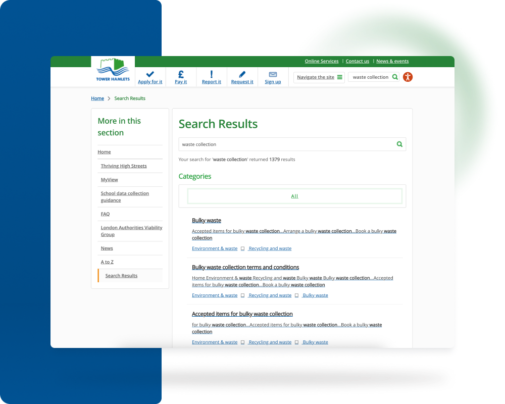 • Tower Hamlets uses search insights to guide information architecture and content priorities