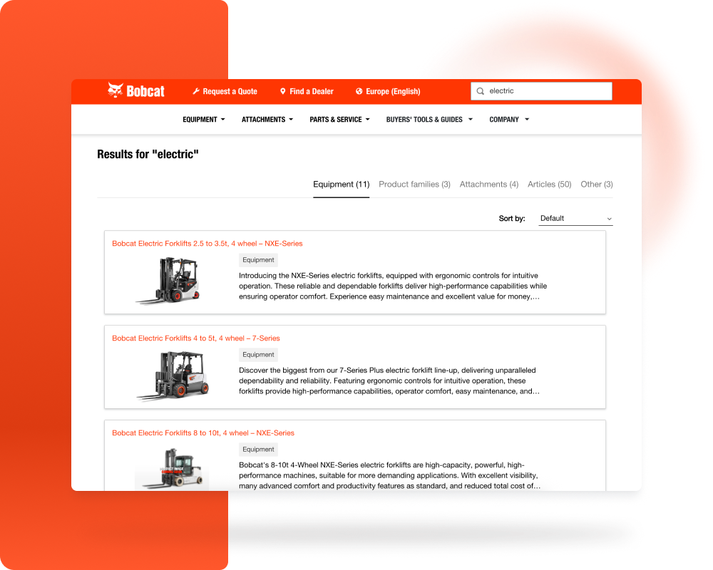 With Cludo’s plug-and-play integrations and dedicated support team, Bobcat transformed its website into a streamlined, customer-first experience that not only makes it easier for visitors to find what they need, but also supports deeper engagement across global markets.
